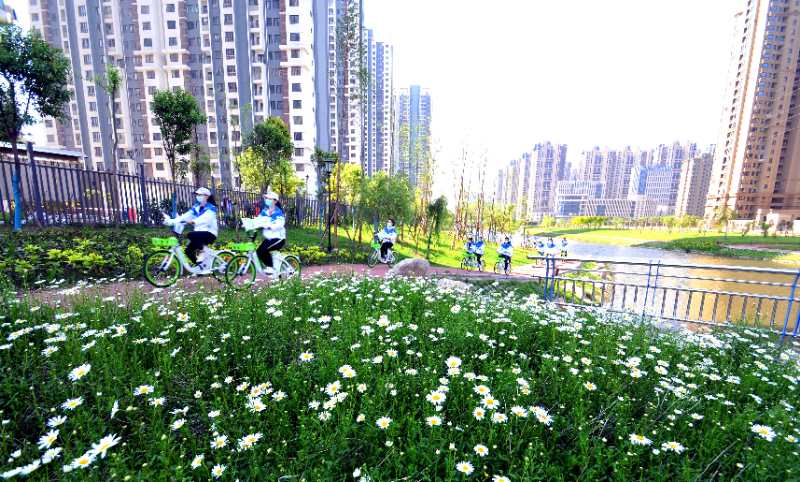 當天上午,60余名安慶港華藍焰義工隊員身穿統(tǒng)一服裝,在港華綠地客戶中心外進行環(huán)保宣誓及簽名儀式,并向廣大市民發(fā)出共同參與綠色環(huán)保低碳生活的邀請。隨后活動參與者排成整齊隊列,集體騎共享單車至安慶市體育中心,全程4千米。騎行中,整齊有序的隊伍和青春活力的身影引來不少路人駐足觀看與詢問,義工隊員們也在騎行間隙,積極向路人散發(fā)環(huán)保知識及安全用氣常識手冊,宣傳節(jié)能減排環(huán)保理念,強化市民安全用氣意識。
