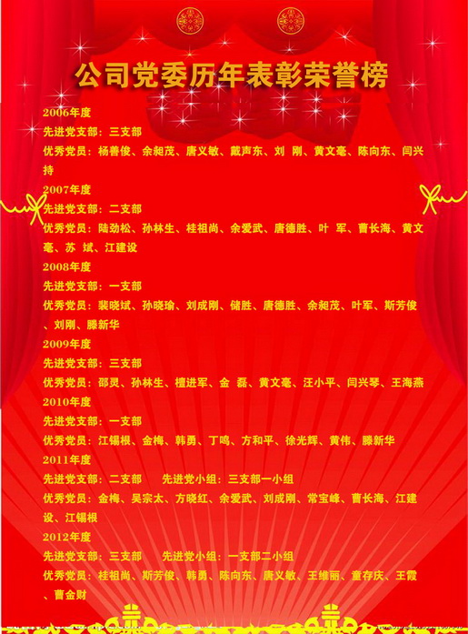 公司黨委歷年表彰榮譽(yù)榜