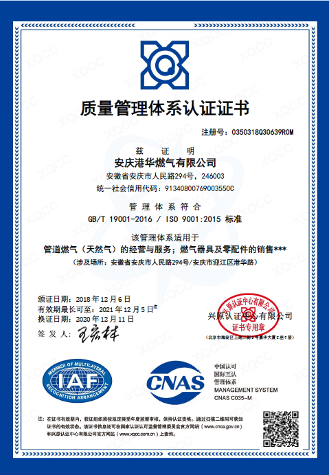 完善、科學的體系是促進企業(yè)規(guī)范、健康發(fā)展的根本,安慶港華將嚴格按照體系要求,規(guī)范運作,不斷檢討和完善,充分發(fā)揮體系的規(guī)范、約束作用,促進企業(yè)快速、健康、高質量發(fā)展。