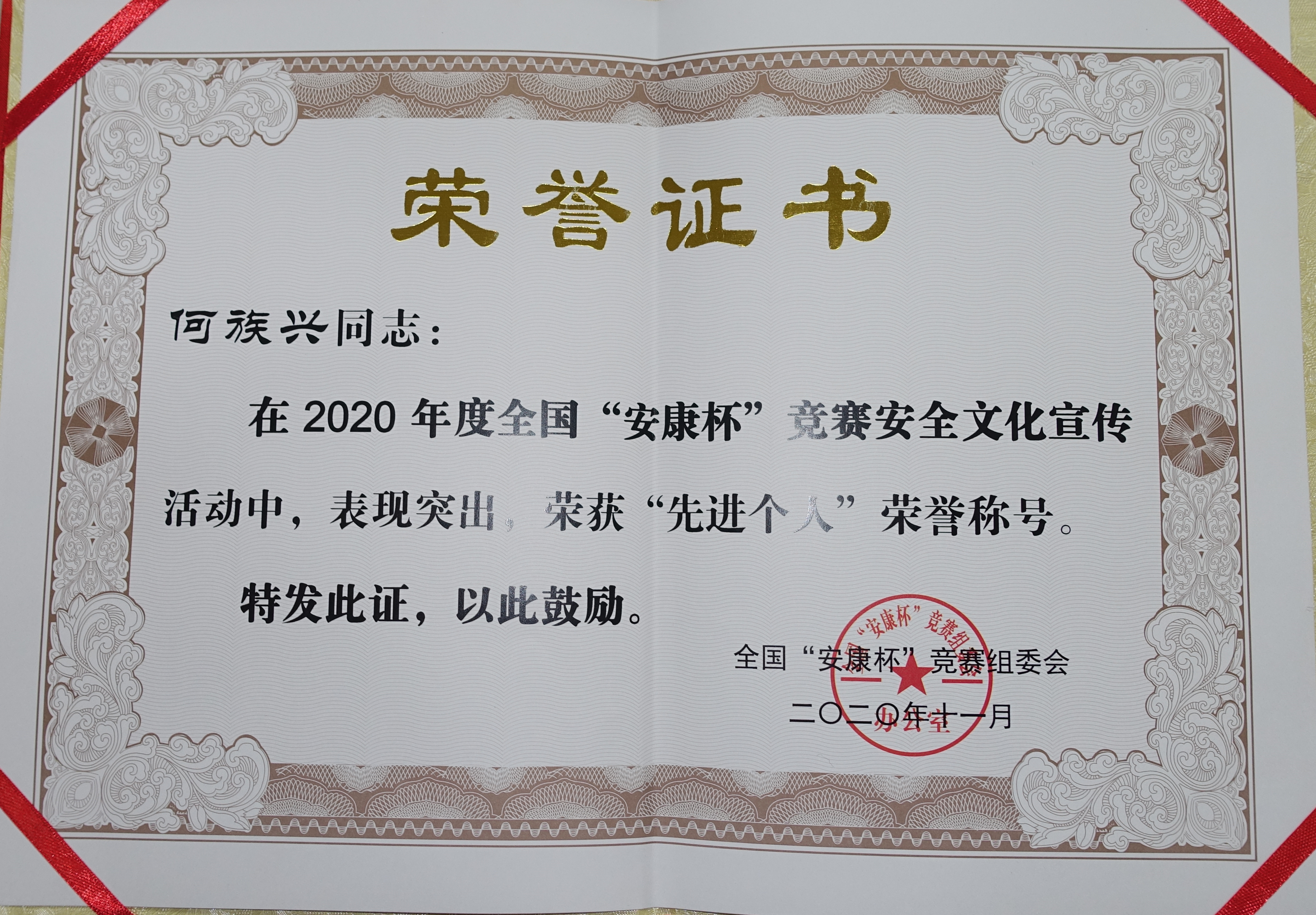 日前,從全國安康杯競賽組委會傳來喜訊,安慶港華榮獲全國“安康杯”競賽安全文化宣傳工作先進單位,公司黨委書記、董事長何族興榮獲全國“安康杯”競賽安全文化宣傳工作先進個人稱號。