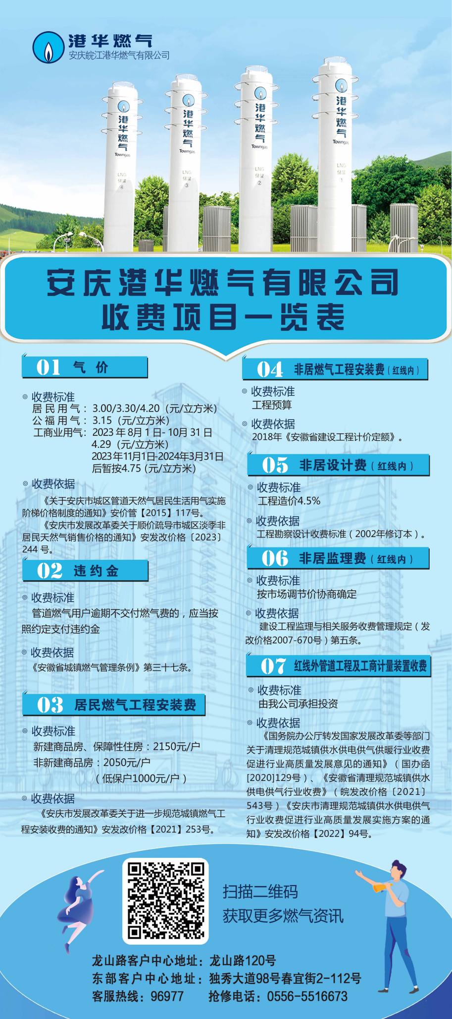 安慶港華燃?xì)庥邢薰臼召M(fèi)項(xiàng)目一覽表(2023)