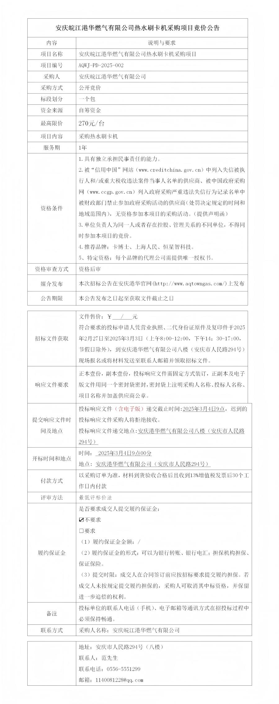 安慶皖江港華燃?xì)庥邢薰緹崴⒖C(jī)采購項(xiàng)目競(jìng)價(jià)公告
