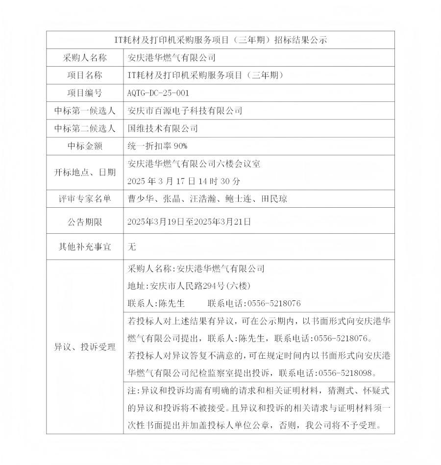 IT耗材及打印機采購服務項目(三年期)招標結(jié)果公示