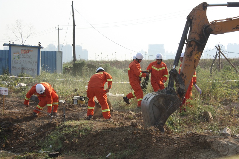 近年來,隨著城市基礎設施及老舊小區(qū)改造工作不斷加快,工程建設對地下天然氣管網(wǎng)的安全運行帶來的威脅亦不斷加大?,F(xiàn)場模擬輝煌路中壓A級PE160燃氣管道被第三方施工單位破壞,安慶港華維搶修中心在接到搶險指令后,迅速派出專業(yè)搶險隊伍于30分鐘內(nèi)趕到事故現(xiàn)場,并有條不紊地開展事故現(xiàn)場控制、疏散警戒、現(xiàn)場信息傳遞、事故逐級報告、消防聯(lián)動配合、搶險方案制定、儀器裝備操作、停氣復供、事故現(xiàn)場調(diào)查等程序,通過多部門配合,最終成功控制險情并修復了受損管道,恢復正常供氣。
